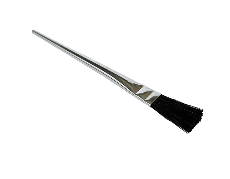 The handle of this brush is made of electrically volume conductive metal. The bristles are also produced of volume conductive, durable polyamide with a high flexibility. In contrast to bristles made of pure carbon, these ones do not break and they have a much longer lifetime.