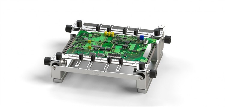 This support is perfectly adapted to any type of PCB by means of its many adjustable parts.
